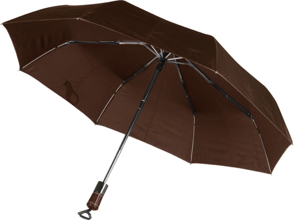 Складной автоматический зонт легок в эксплуатации и хорошо защищает во время дождя. Прочный металлический корпус не деформируется под порывами ветра. На внешней поверхности купола можно нанести логотип и наименование организации. Трафаретная печать (1 цвет (цветные изделия)) на данный товар осуществляется бесплатно. Оплачивается только настройка оборудования в размере 6700 рублей на весь тираж.